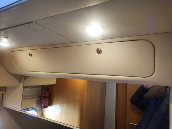 Les découpes autour des hublots, éclairages et équipements nécessitent une finition irréprochable. Des pièces 3D ont été également réalisés et habillés par un simili de même couleur pour garantir un minimums de défauts et embellir l’intérieur. Une fois le vaigrage en place, les éléments démontés sont reposés avec soin, garantissant une intégration parfaite et un rendu homogène.