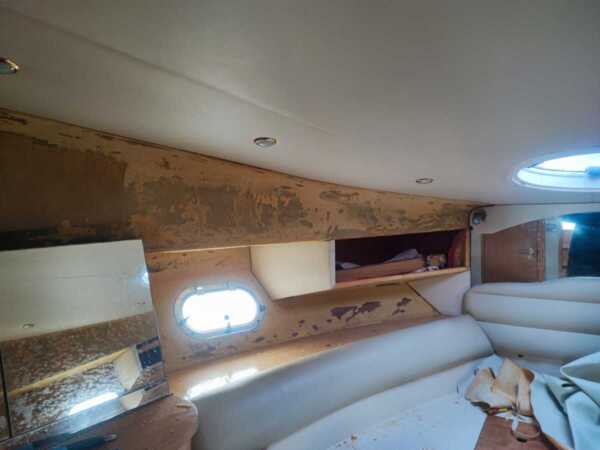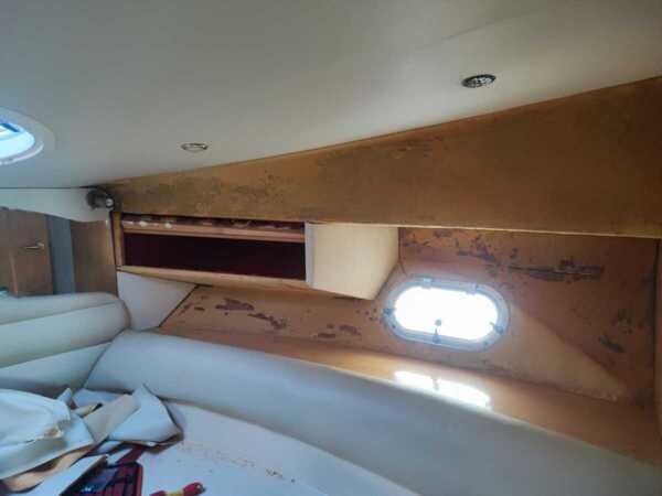 Les yachts de cette époque ont majoritairement été équipés de vaigrages collés à l’aide de mousses et de colles polyuréthanes ou néoprènes. Sous l’effet combiné de l’humidité, des variations de température, de la chaleur et du vieillissement des colles, la mousse se désagrège progressivement. Ce phénomène entraîne l’affaissement du vaigrage, l’apparition de cloques, de plis ou un décollement total, nuisant à l’esthétique intérieure et au confort à bord.