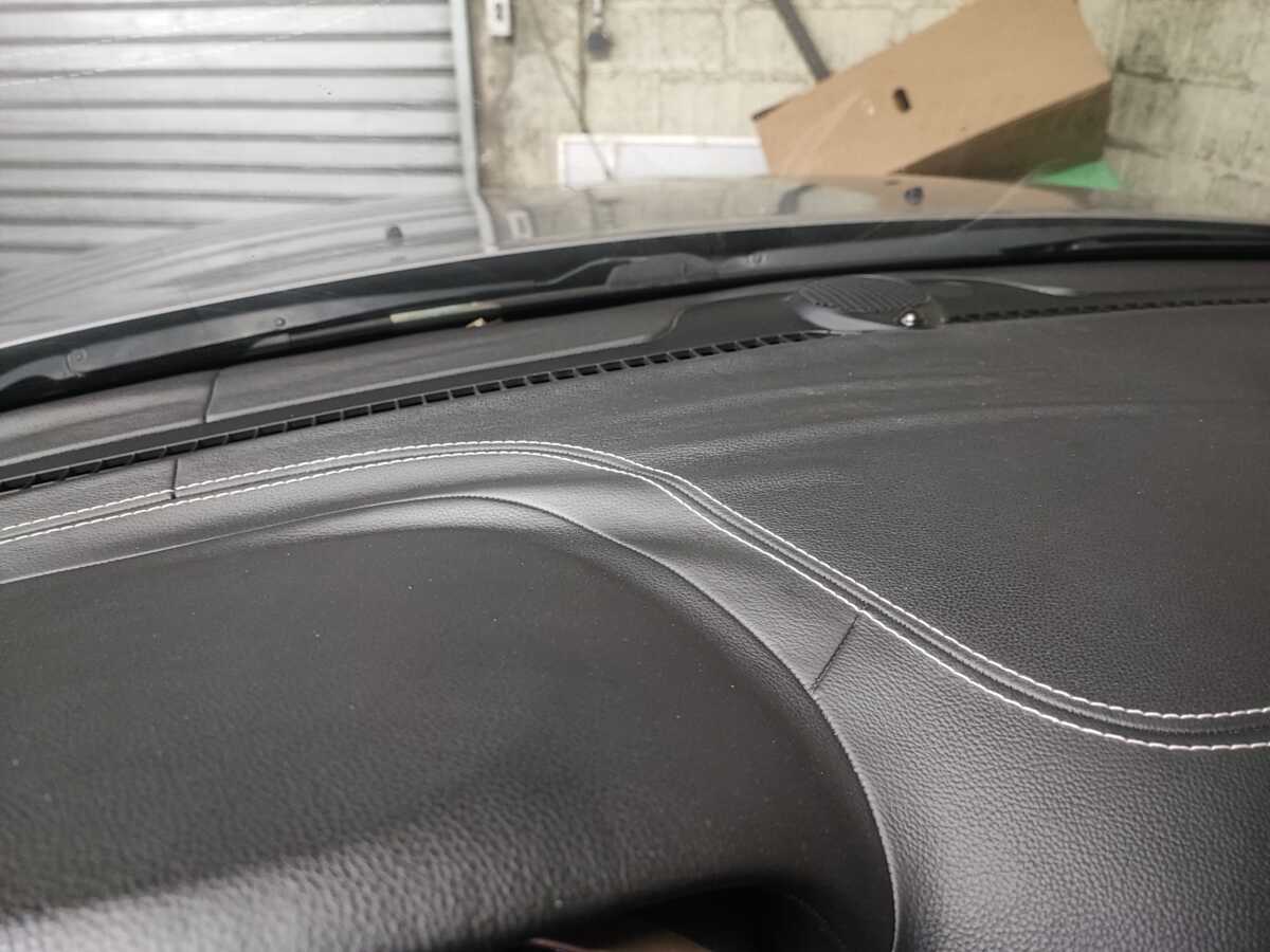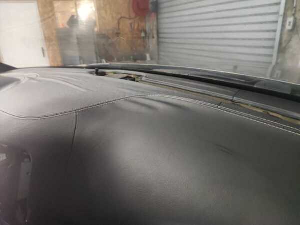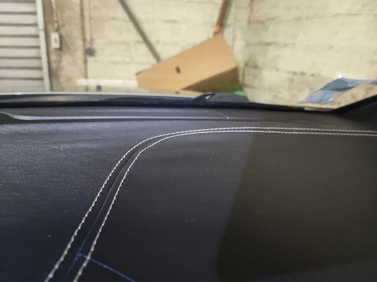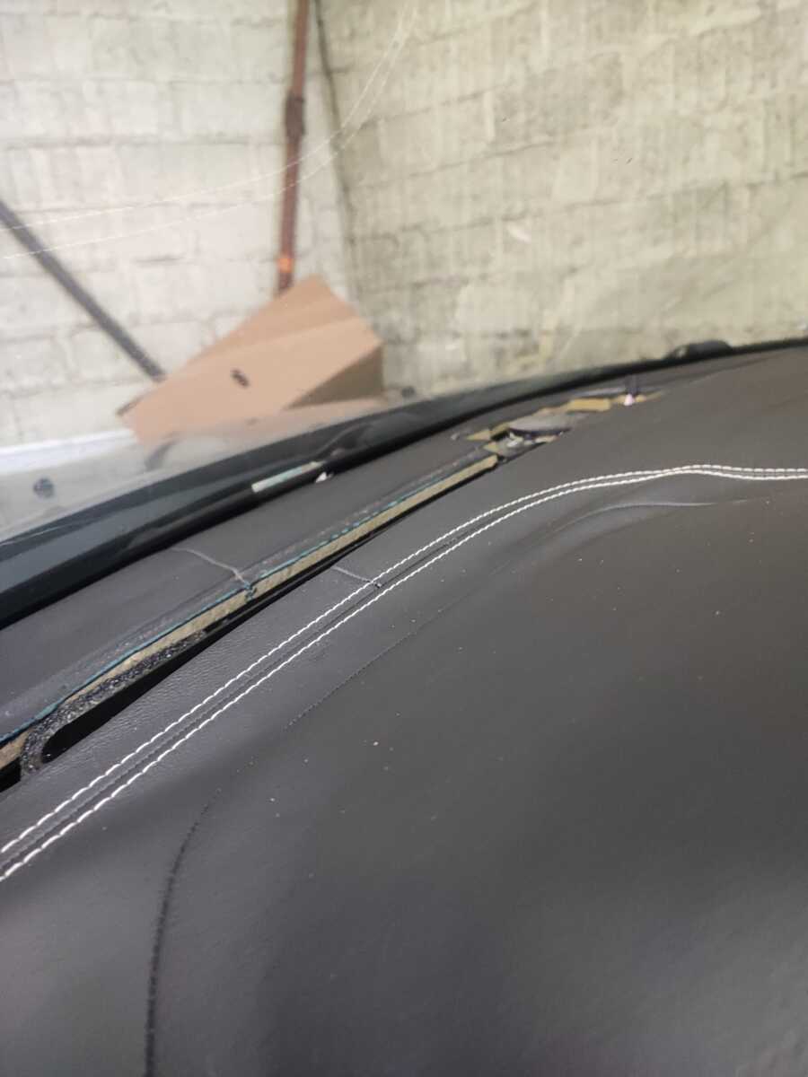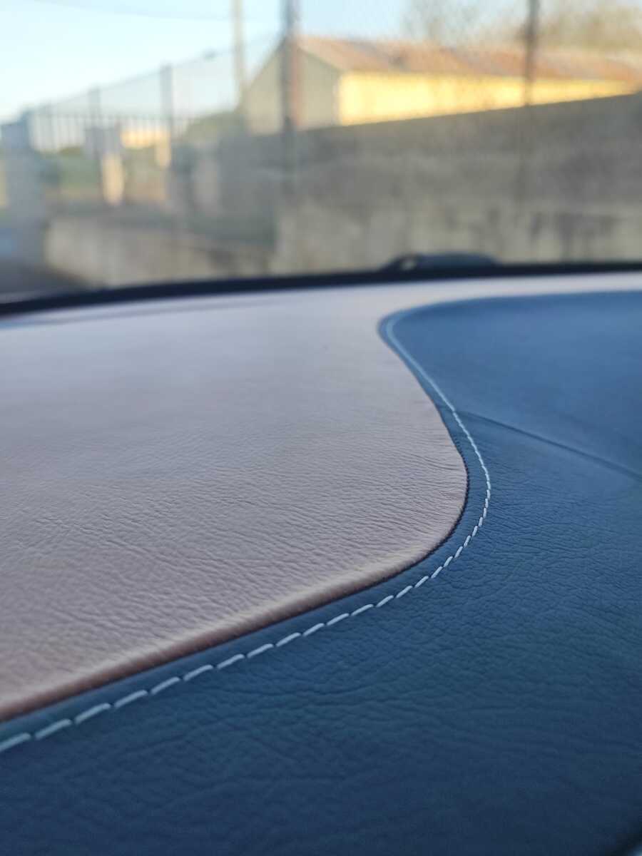 Le cuir du tableau de bord, initialement décollé, a été entièrement remplacé. Ceci a nécessité une dépose du parebrise pour pouvoir accéder plus facilement à l’ensemble du tableau de bord. Il a ensuite été retravaillé dans une finition bi-ton noir et marron, offrant un rendu élégant, moderne et parfaitement harmonisé avec l’ensemble de l’habitacle.