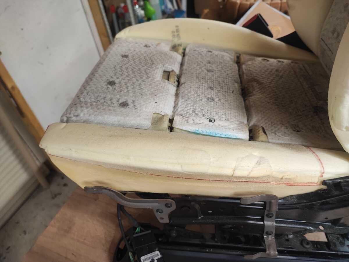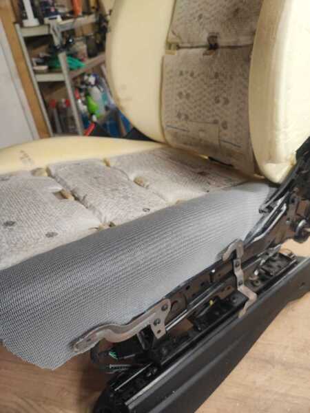 Enfin, une réparation de la mousse d’assise conducteur montée descente à été remplacé et une teinte plus un vernis ont été appliqués sur les deux assises avant, permettant de raviver la couleur, d’uniformiser l’ensemble et d’offrir une protection durable contre l’usure.